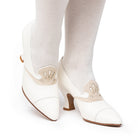 Be utterly beguiling in Elsie Pumps! Meticulously reproduced from period originals, Elsie is accurate to 1890 through 1920. These step-in pumps feature smooth leather and suede uppers in coordinating colors, as well as a distinctive shaped tongue with cutout detailing. Elsie features a custom, perfectly balanced 3”/ 7.6 cm French spool heel, so you can glide across the floor at any soirée. Elsie pairs wonderfully with tea and lingerie gowns as well as evening wear. To keep your Elsies looking spiffy, we recommend pre-treating them with Angelus Water & Stain Repellent.