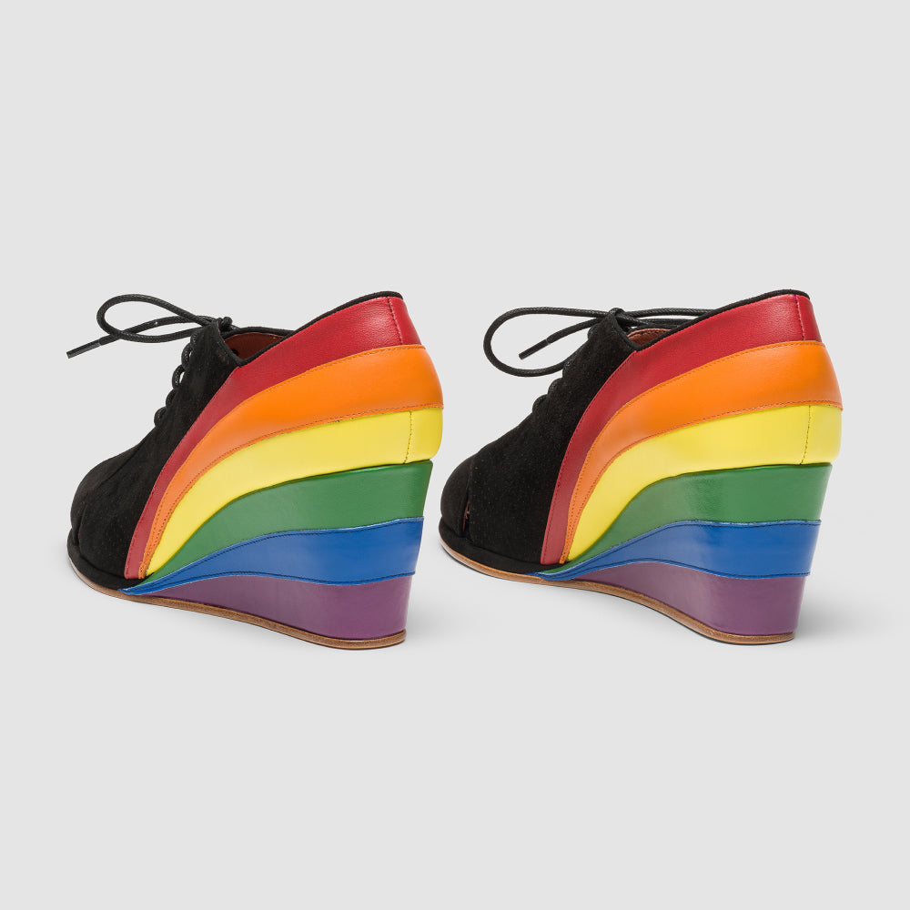 Esme 1930s Wedges Pride Edition (Black/Rainbow)