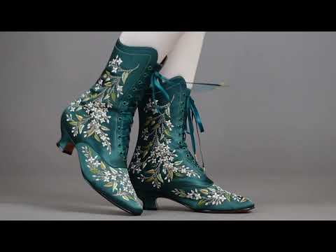 Indulge in a piece of history with Flora Embroidered Boots, an exclusive reproduction of the intricate opera and evening boots popular in the late Victorian period. Expertly crafted with intricate botanical detailing, these stunning satin boots will take you back to an era of sophistication and finesse. Wear them with bustle and Belle Epoque attire from the 1870s to c. 1900, or with modern dress as a statement piece.