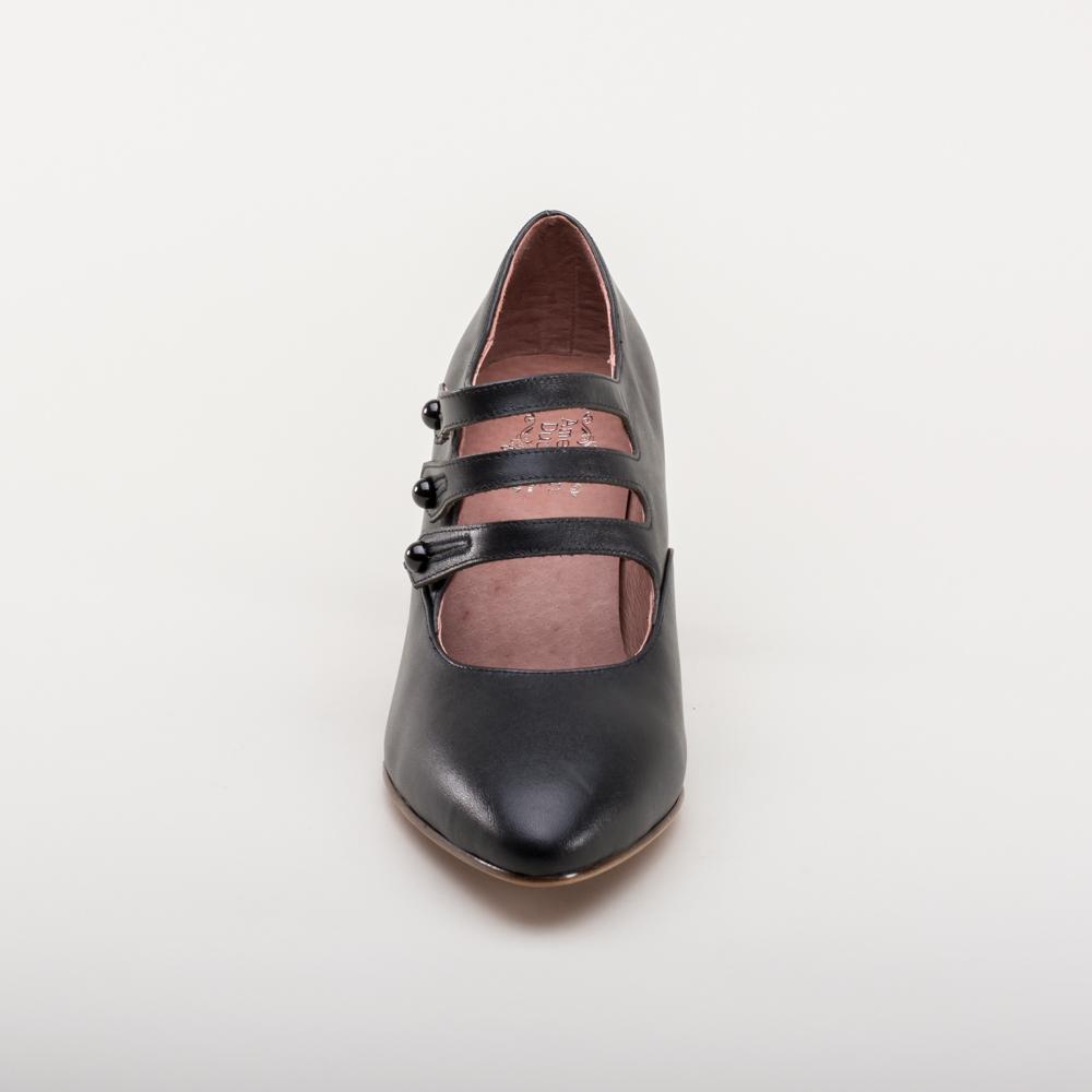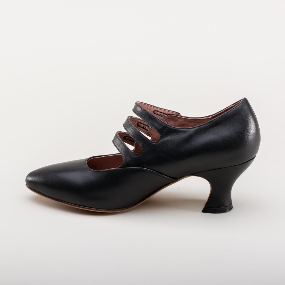 Bellatrix Edwardian Shoes are a stunning and versatile recreation of a classic Edwardian design. Bellatrix feature the iconic side-button triple straps so fashionable in this period. The 2.25 in / 5.7 cm French heel is delicate and well-balanced, paired with a pointed toe to create the perfect Edwardian and 1920s silhouette. Wear Bellatrix with fashion from the turn of the 20th century all the way through the mid-1920s, or with your Gothic, Lolita, cottagecore, dark academia, and historybounding outfits, as well as historical WWI, Downton Abbey and particularly Titanic era dress.