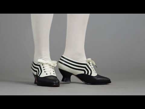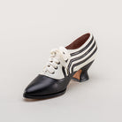 These attractive lace-up shoes have all the style and sass of footwear from c. 1900 through the 1920s and will keep you on your feet and comfortable all day, whether you're attending historical costuming events or walking the streets of New York City. Bernadettes feature our sturdy 2 inch / 5 cm French heel, welted hard-wearing leather soles, pointed toes, and an adjustable lace-up closure, plus all that style with eye-catching contrast stripes on all-leather uppers. Delicious!