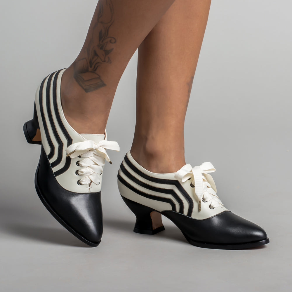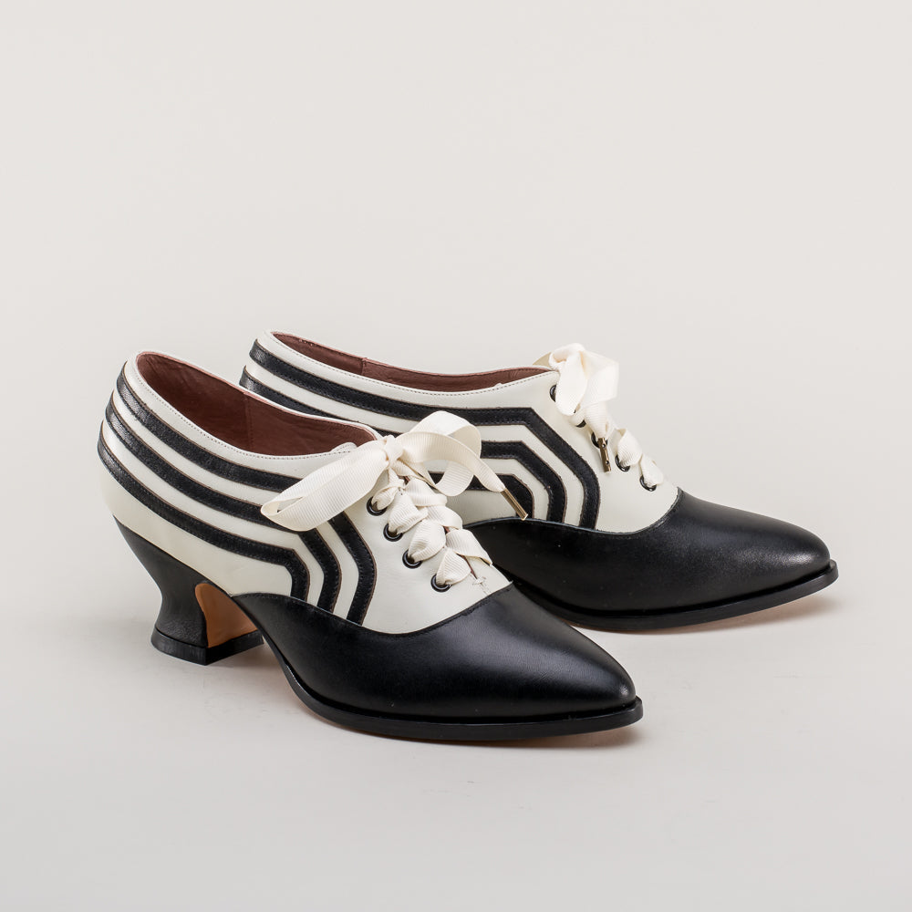 Bernadette Edwardian Oxfords Wide (Ivory/Black)