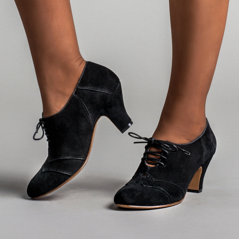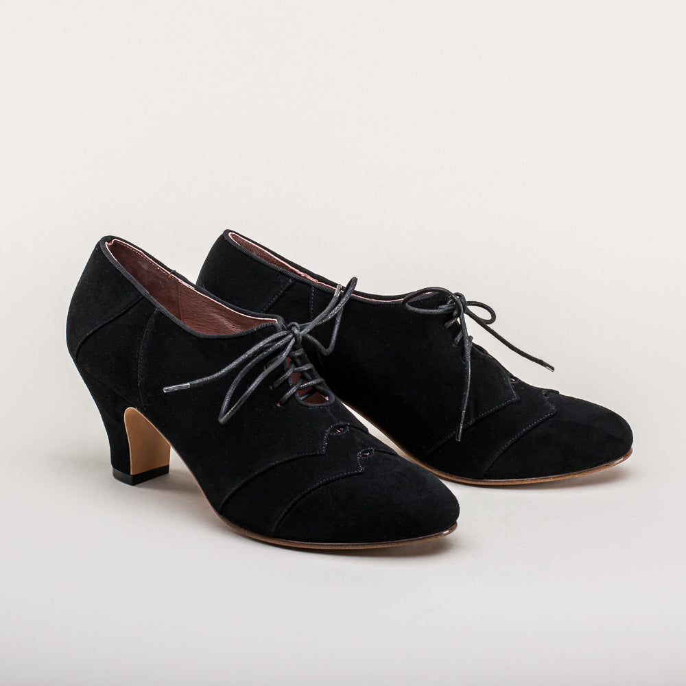 The Karolinas are an all-day shoe made on our famously comfortable '30s last with the perfectly balanced 2.5 in / 6.3 cm Spanish heel. We've chosen footwear-specific suede for this design, which is specially made to wear in all weather without damage. This is a soft yet supportive design perfect to pair with all things vintage.