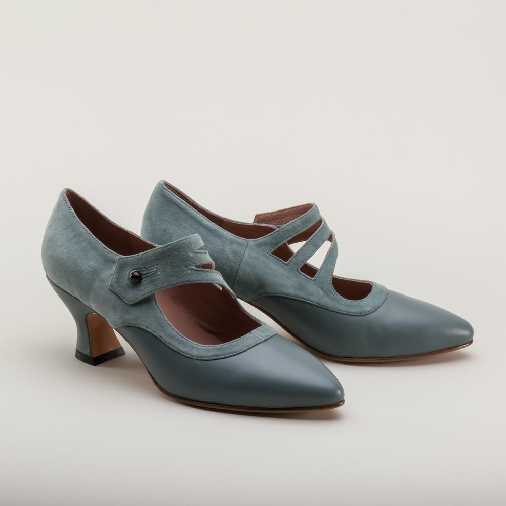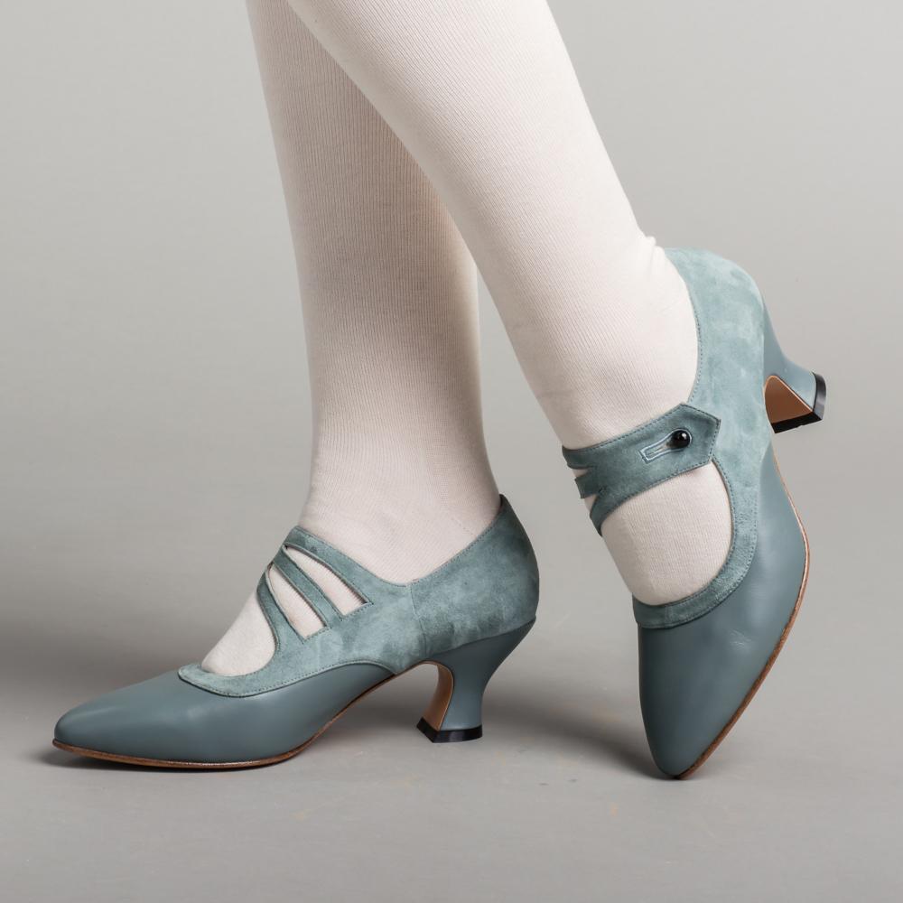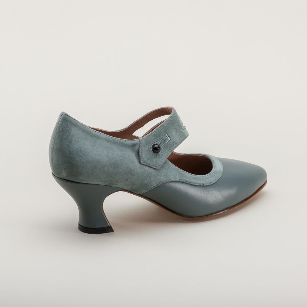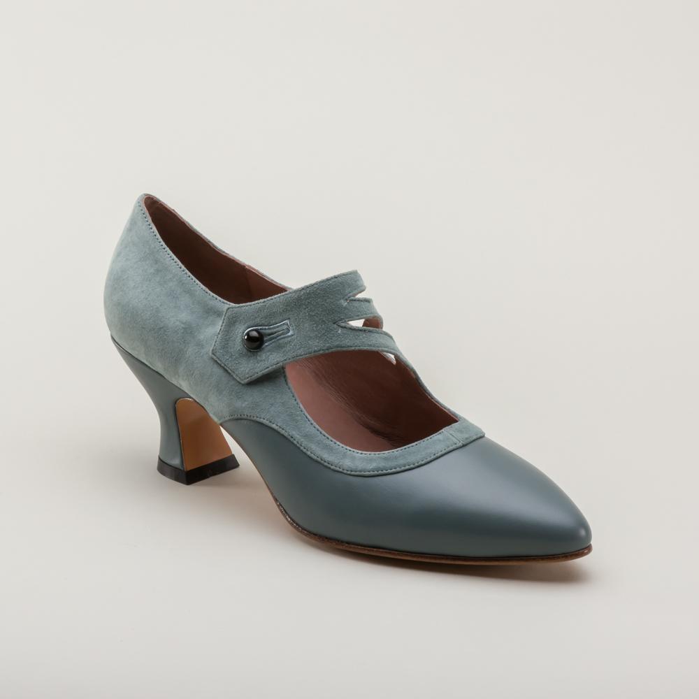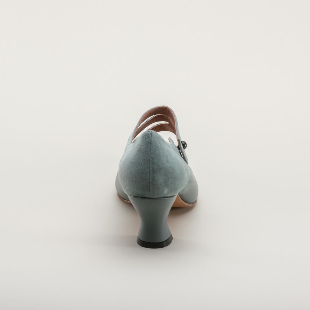 Developed directly from an original 1900s design, the Mae feature tone-on-tone suede and smooth leather with a sophisticated Mary Jane strap crossing elegantly over the instep. The 2.25 in / 5.7 cm French heel is delicate and well-balanced, paired with a pointed toe to create the perfect Edwardian and 1920s silhouette.