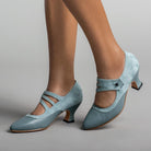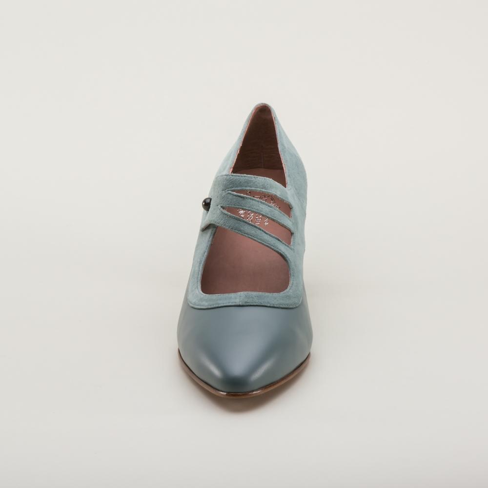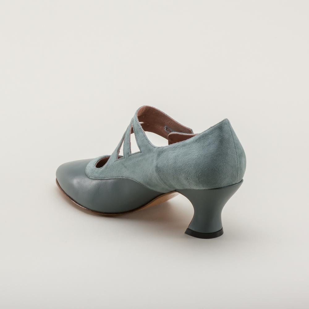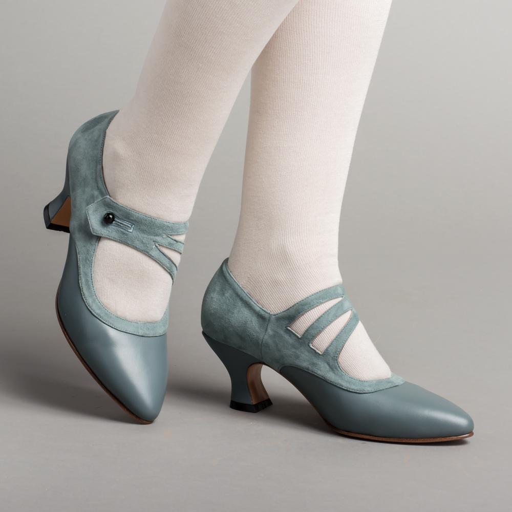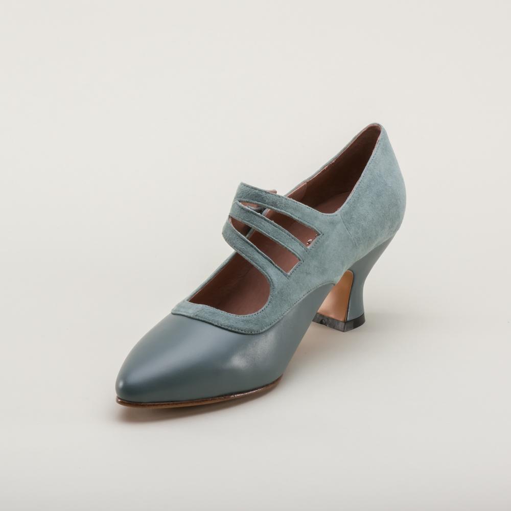 Developed directly from an original 1900s design, the Mae feature tone-on-tone suede and smooth leather with a sophisticated Mary Jane strap crossing elegantly over the instep. The 2.25 in / 5.7 cm French heel is delicate and well-balanced, paired with a pointed toe to create the perfect Edwardian and 1920s silhouette.