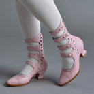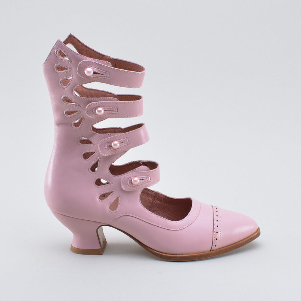 Colette Button Boots are incredible reproductions of true antique boots, featuring intricate cutout detailing and four straps closing with real buttons - no zippers here! To adjust each strap to fit you perfectly, simply move the buttons.