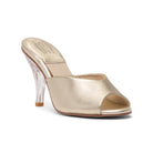 Put some spring in your step with Grace, a dazzling 1950s reproduction mule. These slip-on sensations are made with a period-accurate elasticated insole, which helps secure the shoe to the foot. Grace features our custom, one-of-a-kind, clear 1950s heel, bedecked with intricate etchings and a sparkling rhinestone. Choose from uppers in supple smooth leather, quintessential 1950s clear vinyl, or seductive hair-on cheetah print. Grace is fitted with a lightly treaded rubber sole, making her perfect for wearing poolside. Wherever you go, Grace is sure to turn heads!