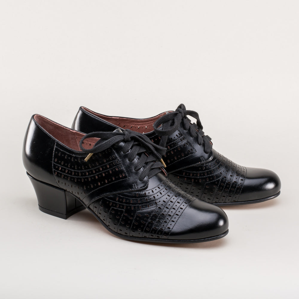 The Bellevue Oxfords are ideal for all attire from the 1920s to the 1960s, especially for CC41 compliant and nurse uniform shoes. Bellevue comes in a high-shine, glacé finish based on originals.