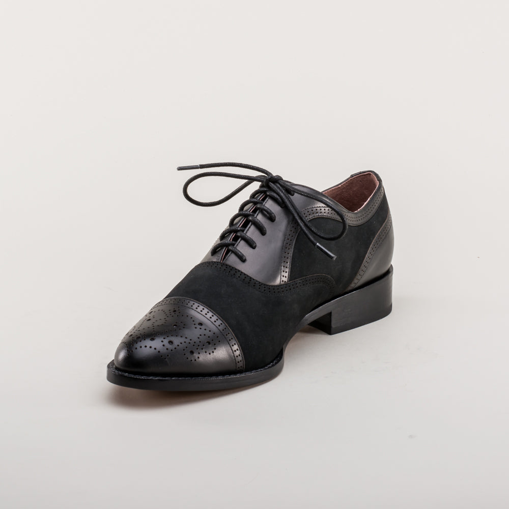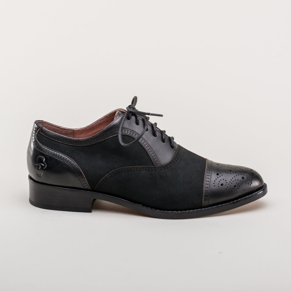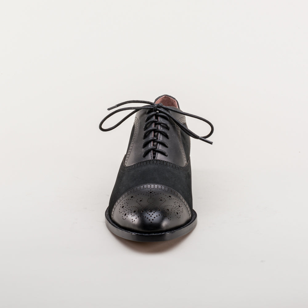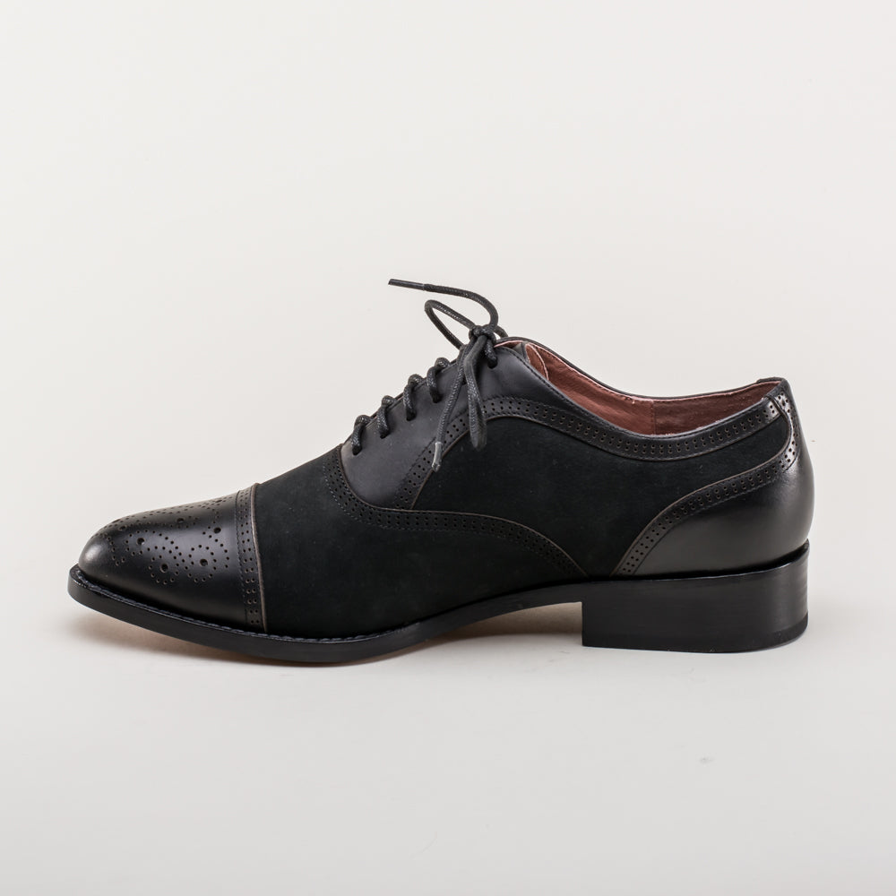 Gladys Vintage Cap Toe Oxfords (Black)