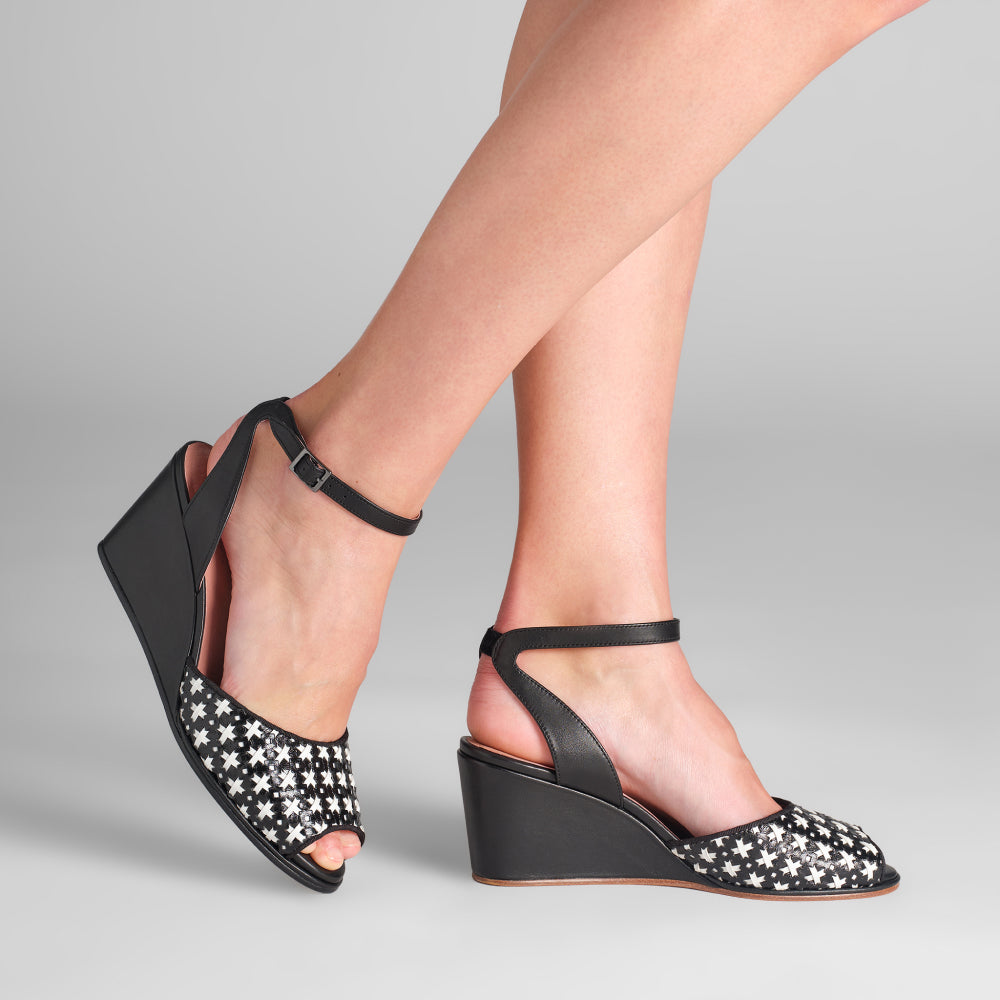 PRE-ORDER Judy 1940s Wedges (Black/Ivory)