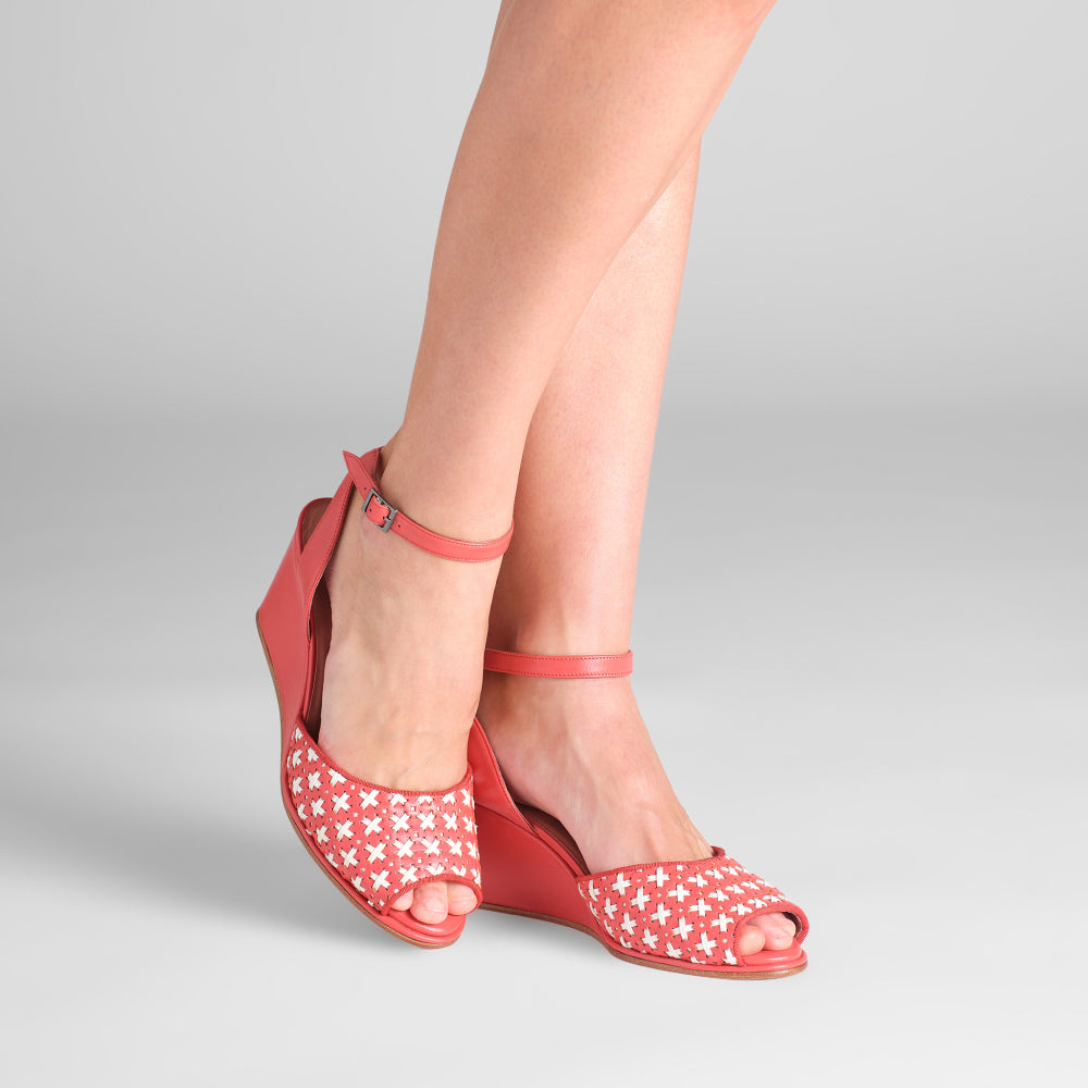PRE-ORDER Judy 1940s Wedges (Red/Ivory)