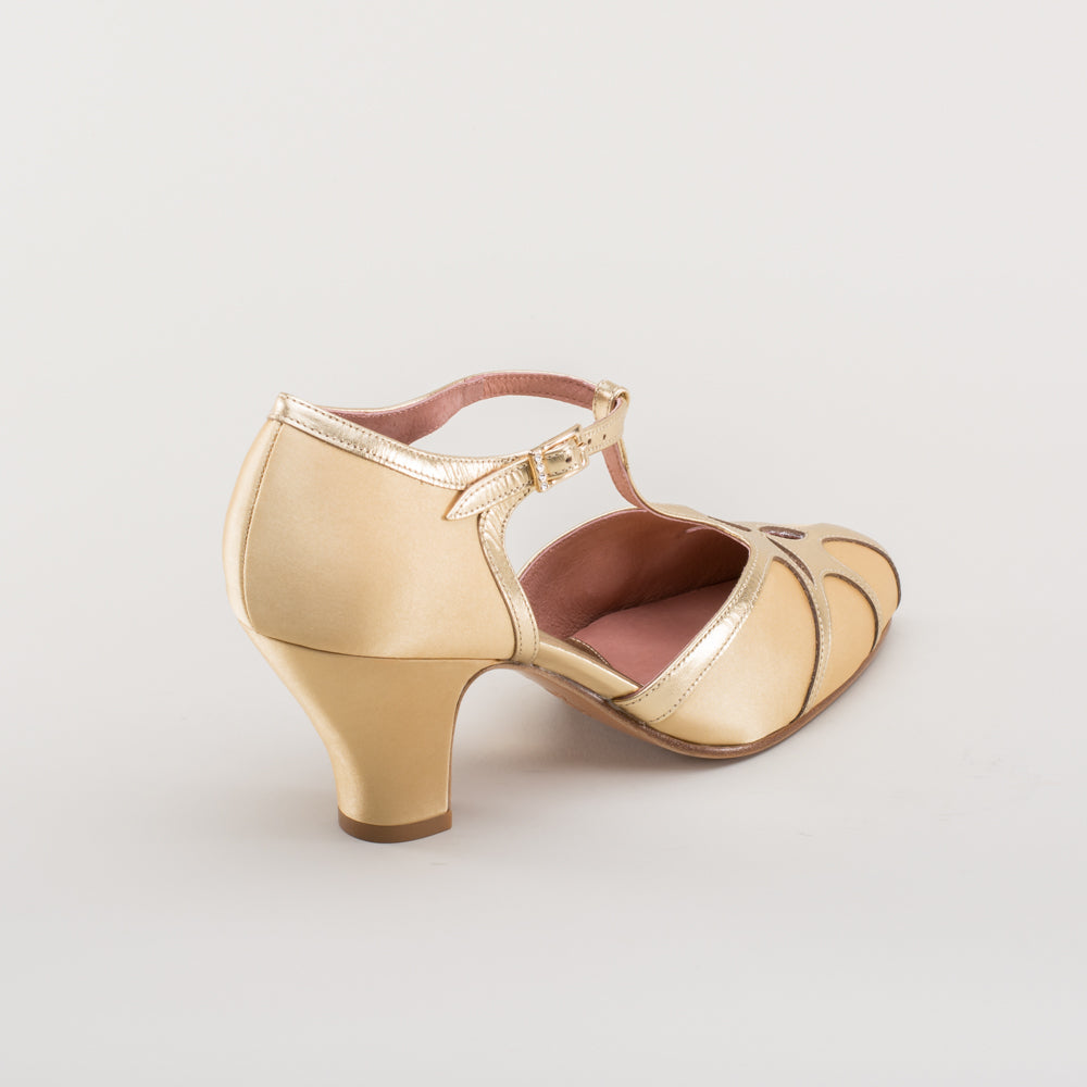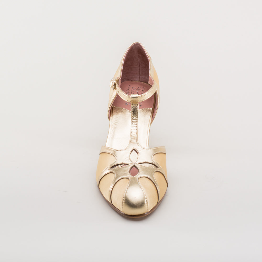 Lilith Vintage Flapper T-Straps Wide (Gold/Gold)