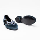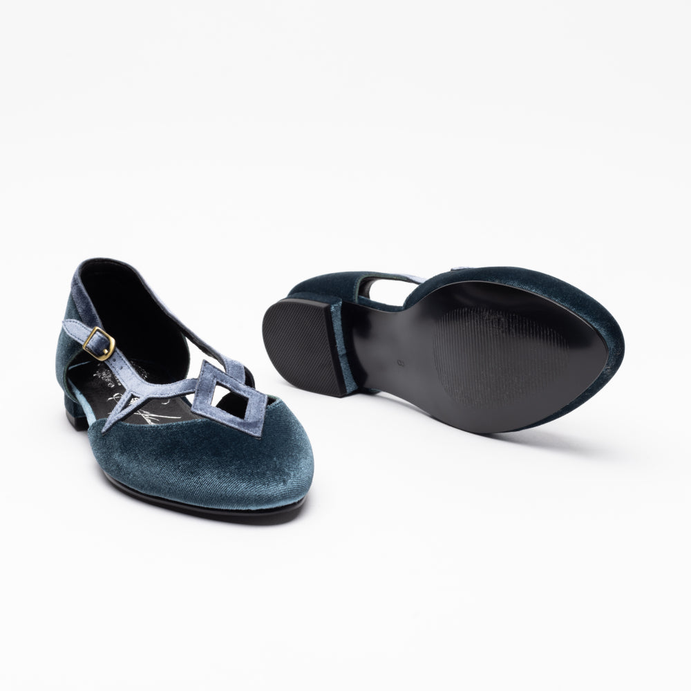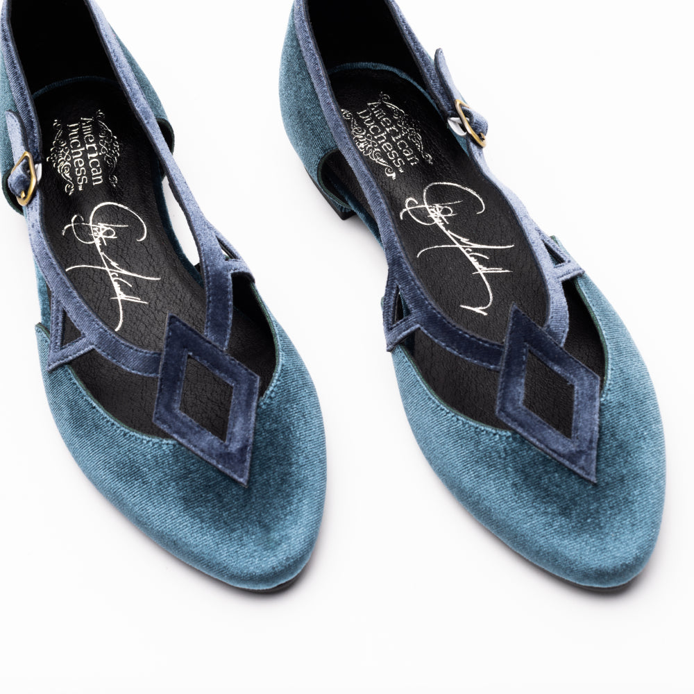 Step into a vintage-inspired fantasy with the Mildred Flats, from our collaboration collection with artist Christine McConnell! Inspired by 1950s 'flatties', these flats are unlike any you've seen before. Uppers in rich, luxe velvet, open sides, and strappy details festooned with geometric motifs make Mildred unique. Mildred features our dependable 0.5"/ 1.27 cm common sense heel, which is low and sturdy for all-day comfort. These shoes are festive, leather-free, and come in five gorgeous colorways.
